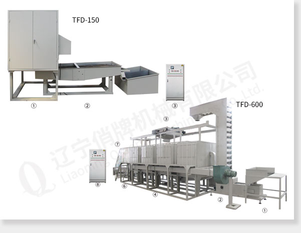 TFD-150 consists of ①mung beans decorticator ②sieve for sorting out bran③electric control cabinet
